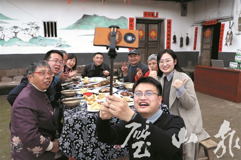 2月11日,大年三十,在正兴镇大面坡村,驻村工作队队员和脱贫户们一起吃年夜饭、拉家常、话发展,在庆祝新春佳节的同时,感受扶贫政策给当地带来的巨大变化。近年来,该村通过开设扶贫车间、发展草皮种植产业、清水养鱼等一系列举措,帮助该村28户、78名贫困户全面脱贫。