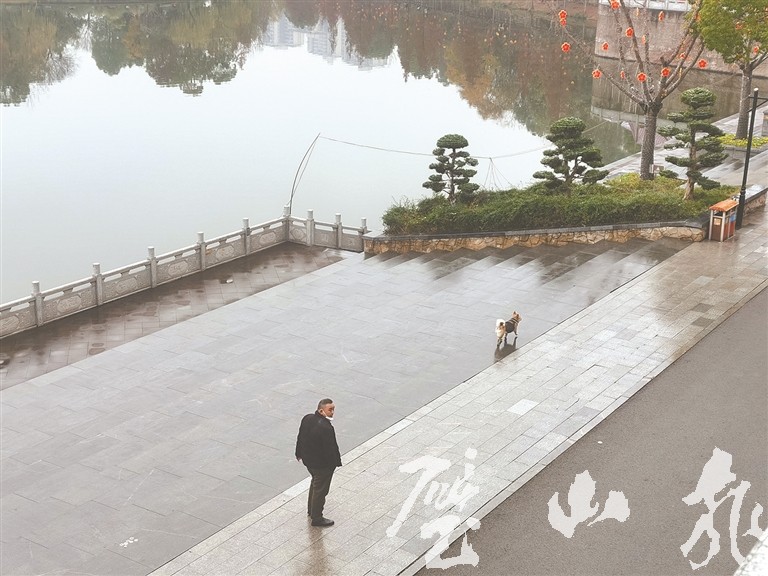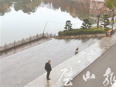1月2日,在秀湖公园,一市民遛狗却并未拴狗绳。宠物犬爱动,不仅到处跑,有时还会大小便。景区内遛狗,不仅会破坏整洁的卫生环境,还会给其他游客造成不便,尤其是可能吓到老人和儿童。希望广大游客文明旅游,维护好我们的城市形象。(记者 杨文广 摄)
