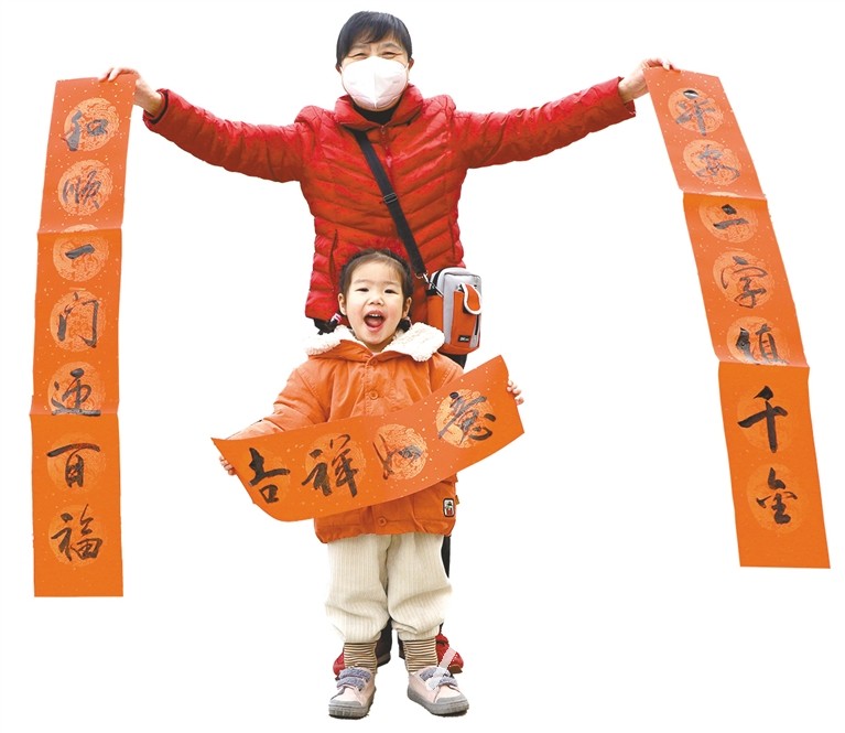 “今天特地带着小孙女一起过来挑选一副春联,让小朋友更加熟悉我们的传统文化,感受新年的喜庆氛围。”市民朱玲高兴地说。