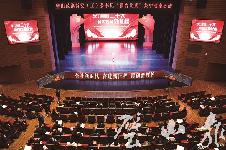 去年5月12日,璧城街道杨柳坝社区东福宏洲小区内,6个社区的党组织书记先后上“擂台”,围绕“老旧社区改造”主题分享经验、畅谈体会,表态下步努力方向;7月1日,全区村(社区)党组织书记“擂台比武”集中观摩活动在文化艺术中心大剧院上演,书记们用一场别开生面的“沙场点兵”;12月29日,来自璧山区15个镇街的党(工)委书记带着乡野田畴的“泥土气息”,带着深情厚意的为民情怀,也带着乡村振兴的“看家本领”,在2022年度镇街党(工)委书记“擂台比武”集中观摩活动现场讲经验、比思路、晒实绩、展风采、话振兴……