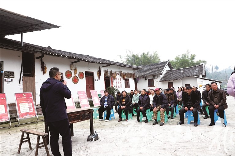 张国清从党的二十大的主题和主要成果讲起,又以自己亲身经历为例,结合党的二十大报告,用一个个生动、详实的事例以案说法,为大家讲解新时代“枫桥经验”原理,倡导大家做自觉守法、遇事找法的好公民。随后,张国清立足自身岗位职责,结合社区矫正和安置帮教工作,讲措施、讲方法,通过监督管理或者教育帮扶,从而预防和减少犯罪。最后,他和村民积极互动,引导大家将党的二十大精神融入自身生活工作实际,思考每个人在全面依法治国中如何更好发挥作用。