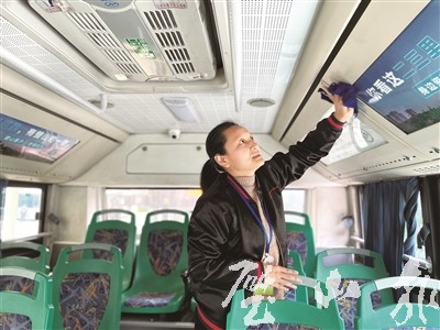 | “道路千万条,安全第一条”,这不仅是宣传标语,更是公交司机铭记在心的准则。女公交司机以每位乘客的安全为己任,用心待客、爱车如眼、规范驾驶、礼让行人,她们就是一座城市的文明名片。图为3月4日,公交司机何宗莲在清理车内清洁。 |
