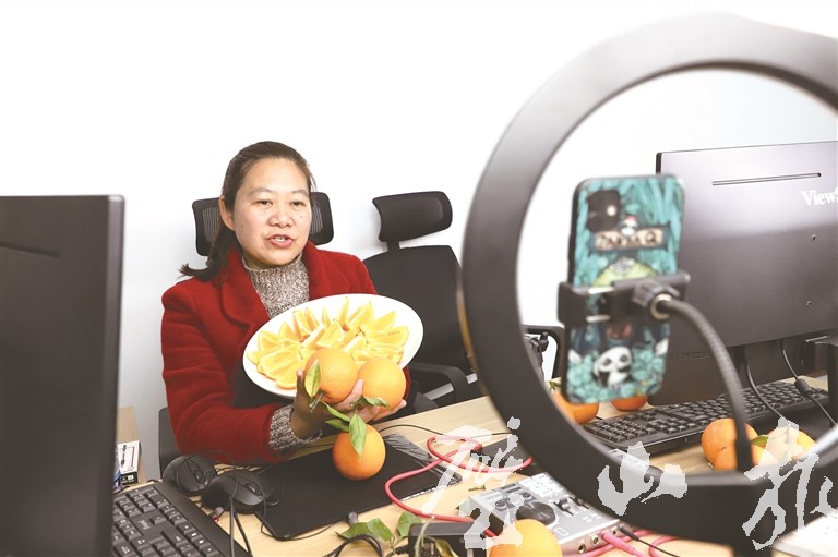 | “面朝黄土背朝天”的农民形象已成过去式,如今的农民都修炼了“一身武艺”。直播带货达人、致富带头人、“乡村+文旅”新农人,都是她们的头衔,农民不再只拼体力,更需要生命力、“巾帼力”。图为3月5日,致富带头人尹道富在广普镇坪中村的产业发展服务中心教授学员直播技巧。 |