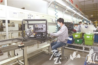 大江动力车间内,工人们正在装配产品。