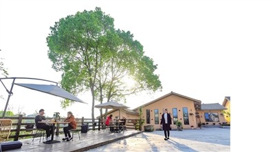 漫步在“花田牧歌”生态农业园,土墙黛瓦的古朴小院、禅意风格的民宿房间、移步易景的石板小路,让人流连忘返。园内种植有樱花、玉兰花、红梅、红叶李、桃花、杨梅、紫藤花、蔷薇花等多个品种的苗木,绿树鲜花错落有致,犹如星光点缀园区。