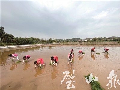 “分秧要均匀,秧苗之间要保持一定间距……”在护普村成片的高标准农田里,擅长农作的老党员刘洪仁、人大代表尹道富仔细讲解着秧苗的种植步骤,志愿者跃跃欲试,纷纷挽起衣袖、卷起裤腿,干劲十足“扎”进水田,大家分工明确、协同合作,分秧、送秧、插秧,不一会儿,一块两亩多的农田便换上“绿装”。