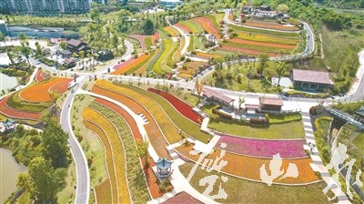 5月12日,“重庆市最美坡坎崖”——古道湾公园梯田花海鲜花盛开。据悉,古道湾公园梯田花海依地势而建,是利用坡坎崖打造的30级波浪式等高线梯田,通过栽植金丝桃、大花海棠、天竺葵等多年生花卉,撒播百日草、波斯菊、硫化菊、马鞭草,并结合季节搭配时令花卉和花境植物,为公园景观增色添彩,以其丰富的景观效果、多变的边坡色彩给人留下深刻印象。