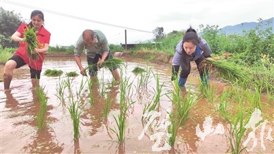 田畴染新绿,春耕正当时。眼下正是早稻插秧的关键期,在健龙镇新石村6组的田间地头,载满秧苗的插秧机在农机手的操作下,来回穿梭,嫩绿的秧苗从秧苗盘缓缓滑落,整齐地插在水田里,一幅生机盎然的“春耕画卷”徐徐展开。