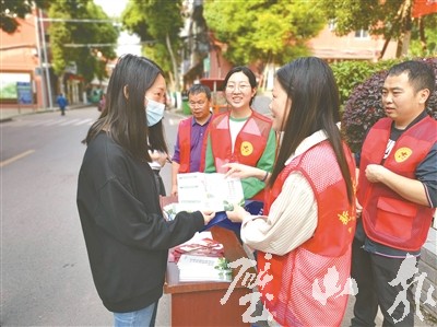 “您对开展全国文明城区创建的效果是否满意?”“您认为创建文明城区是否改善了自己的生活环境?”活动中,志愿者一边向居民发放创文宣传资料,一边询问听取居民对创文工作的意见和建议,号召大家发挥主人翁意识,爱护辖区居住环境,践行文明礼仪行为,争当文明创建志愿者。
