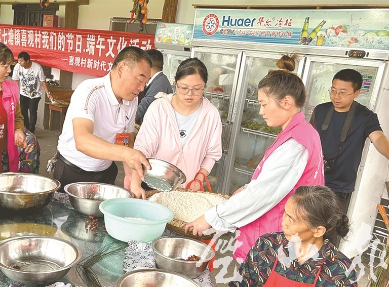 6月19日,七塘镇组织区、镇人大代表来到喜观村幺滩院子二嫂农家乐,与新时代文明志愿服务队的队员一起开展包粽子比赛。随着比赛一声令下,大家都投入到紧张又兴奋的比赛中,不一会儿,一只只玲珑饱满的粽子就初见雏形。围观的村民也在一旁为选手加油鼓劲,活动现场气氛热烈,四处洋溢着欢声笑语。