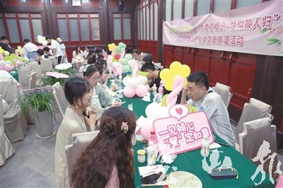 本报讯(记者 张保鹏 文/图) 在七夕节来临之际,团区委、区双拥工作领导小组办公室、区总工会、区妇联联合举办以“青春偶遇·‘璧’定是你”为主题的青年交友活动,各机关、企事业单位及部队单身未婚青年近百人参加。